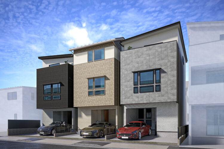 駅徒歩7分、幅員10m道路という「土地の力」。 そこに建つ、ライフスタイルに合わせて丁寧に設計された3つのコンセプトハウス。