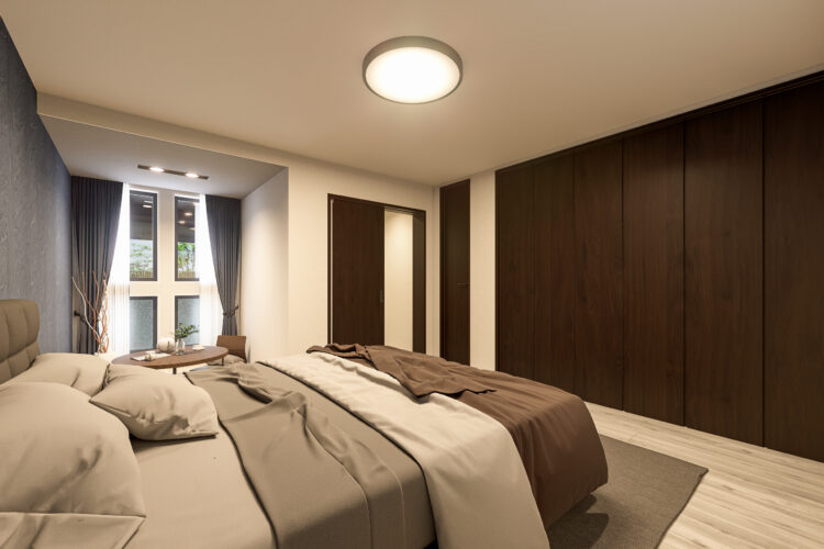 ■ 1階主寝室×タタミコーナーという「贅沢」 この間取りの大きな魅力は、1階主寝室に設けられた「2帖のタタミコーナー」。 お風呂上がり、リビングのテレビ音から離れて、この場所へ。 色あせやダニの発生を抑える高機能畳を採用しており、清潔感も長持ちします。 お気に入りのクッションにもたれて読書をしたり、夫婦で静かに晩酌をしたり。 ただ「寝るためだけの部屋」が、明日への活力を養う「大人の隠れ家」に変わります。
