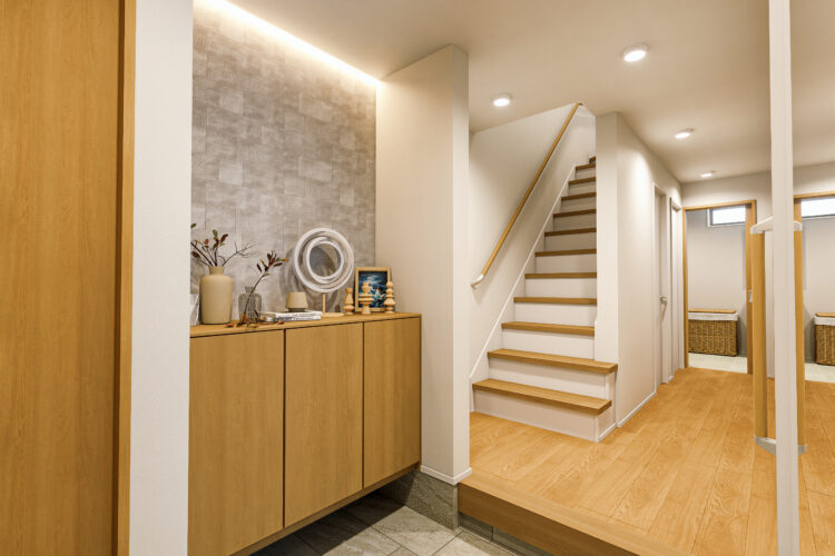 また、2階のトイレの外に独立した手洗いカウンターを設けているのもポイント。 食事の前の手洗いや、来客時にサッと使える場所があるのは、実際に住んでみると非常に便利に感じていただけるはずです。