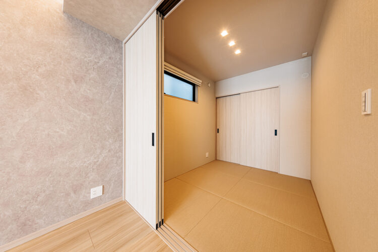 和の余白: ダイニング横の和室(3.8帖)や、2階主寝室の「勾配天井」が、空間に変化と落ち着きをもたらします。
