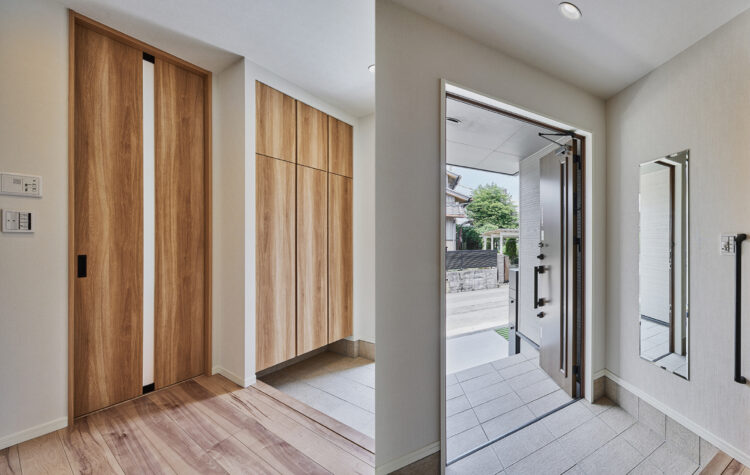 来客の際などに玄関扉の前まで降りて開ける手間が不要に。快適な暮らしをおくれる機能をお家の随所に採用しています。