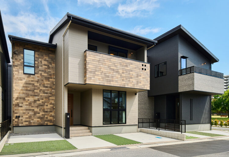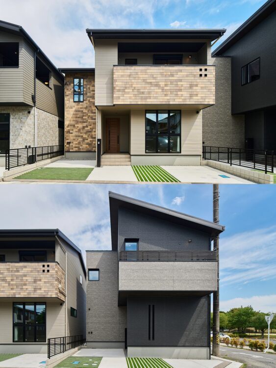 2棟のお家はそれぞれモダンな外観デザインの中に個性を持たせました。
