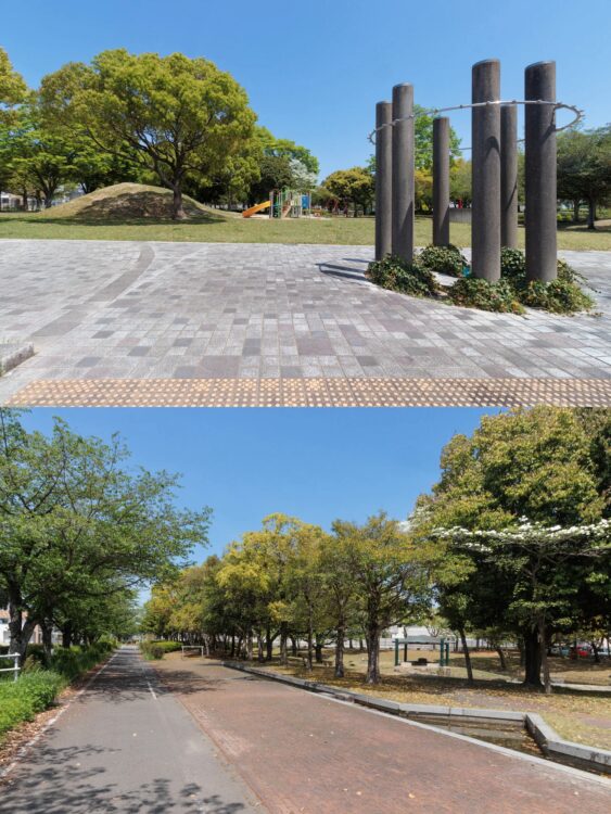通りを挟んで向かい側に木々が連なる公園、すぐ近くには安城市と豊田市をつなぎ、豊かな緑と水のせせらぎが心地よい豊田安城サイクリングロードが通っており、落ち着いた住宅環境が広がっています。