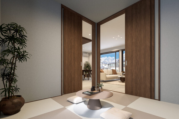 リビングとフラットにつながる4帖の和室は、ライフスタイルの変化に合わせて、その役割を柔軟に変えていきます。