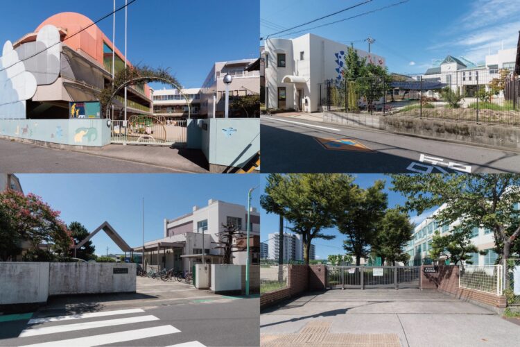落ち着いた街並みが広がる名古屋市北区の住宅街に完成した3棟のお家。幼稚園・保育園に加えて小学校・中学校も徒歩2〜3分で通うことができて、子育て家庭に絶好のロケーションとなっています。小児科医院もすぐ近くにあります。