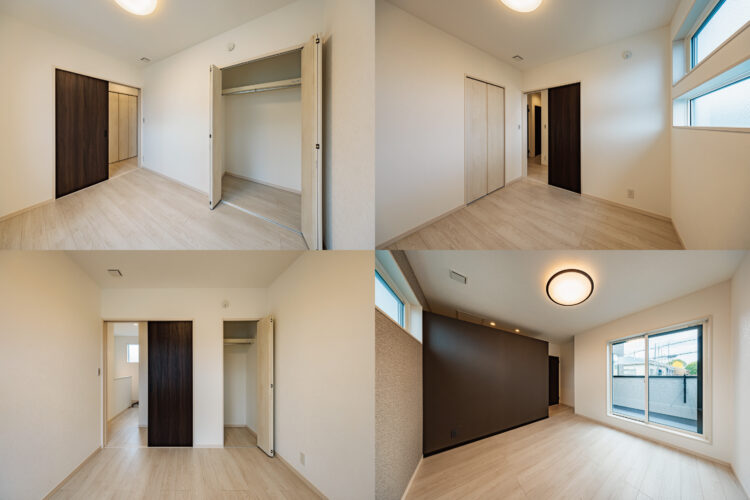 3棟ともに名古屋市内でありながら4LDKの間取りを実現しました。2階には主寝室の他に3部屋あり、ご夫婦の寝室と子ども部屋2室に加えて1部屋をフリースペースとして仕事部屋や趣味の部屋、衣装室などに活用することができます。