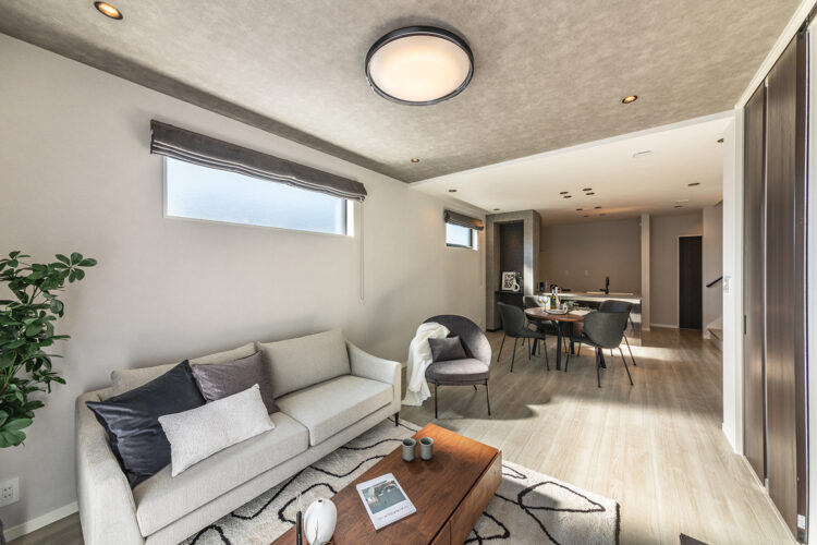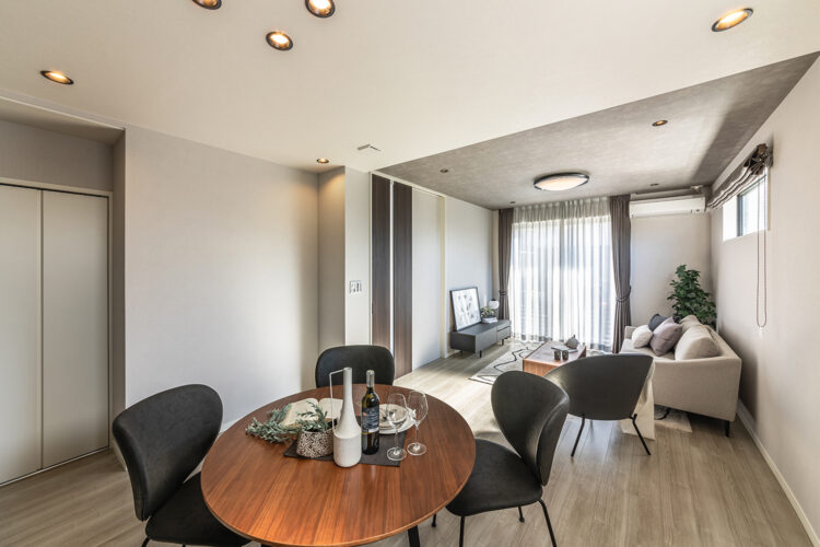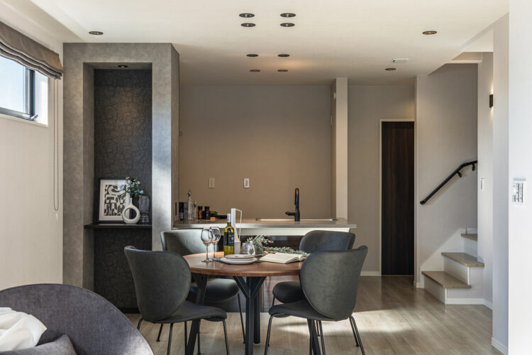 グレージュアッシュ柄のシックな装いで洗練された印象の空間に。