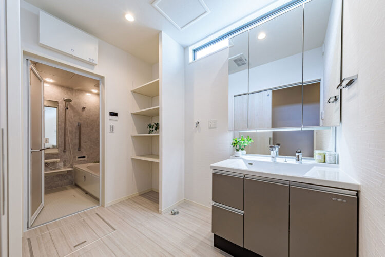 広めに設けた洗面脱衣室は、ワイドな洗面台をセットしてもゆとりのある広さなので、入浴後のお子さんの着替えのお世話も楽々できます。