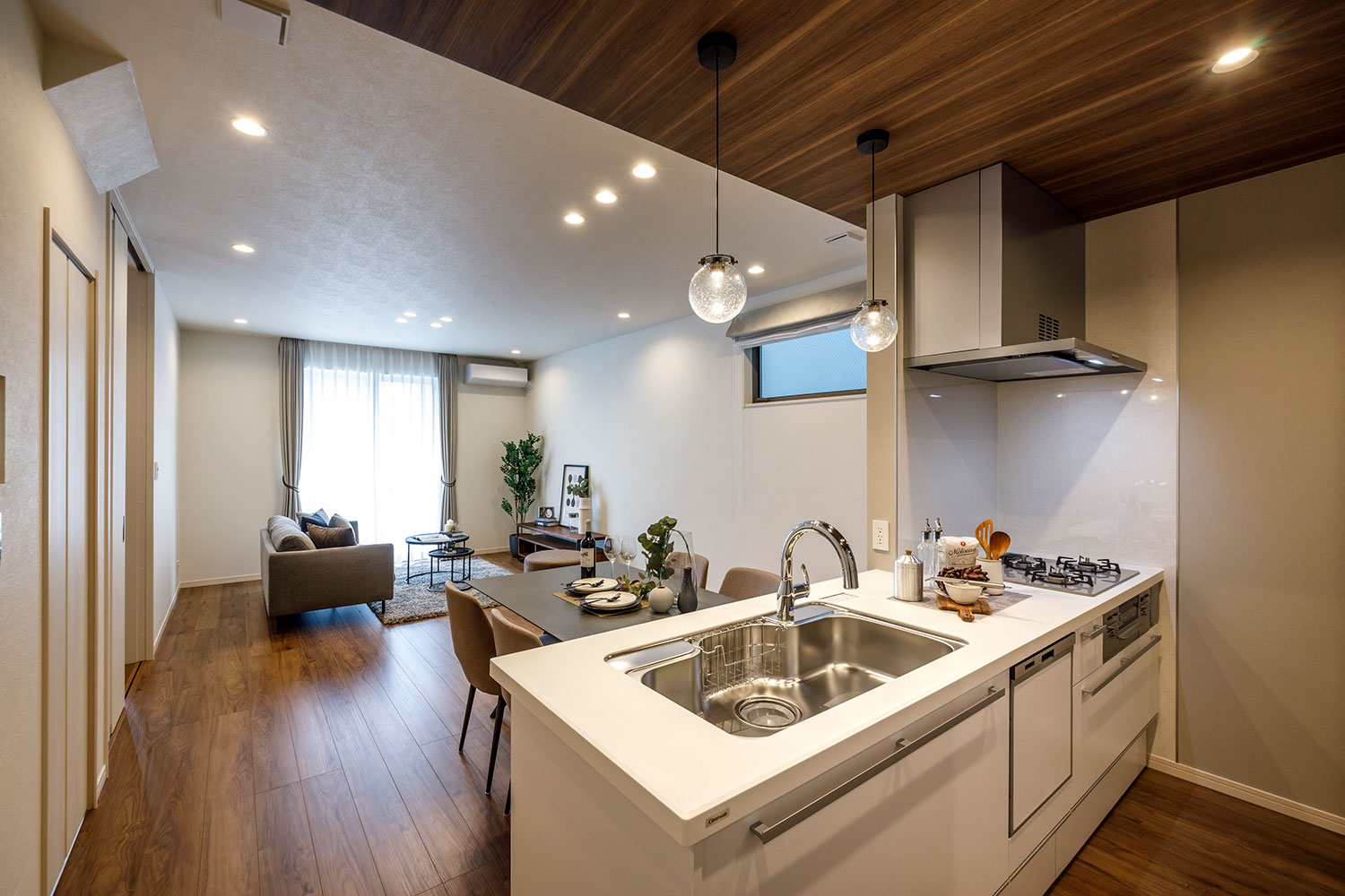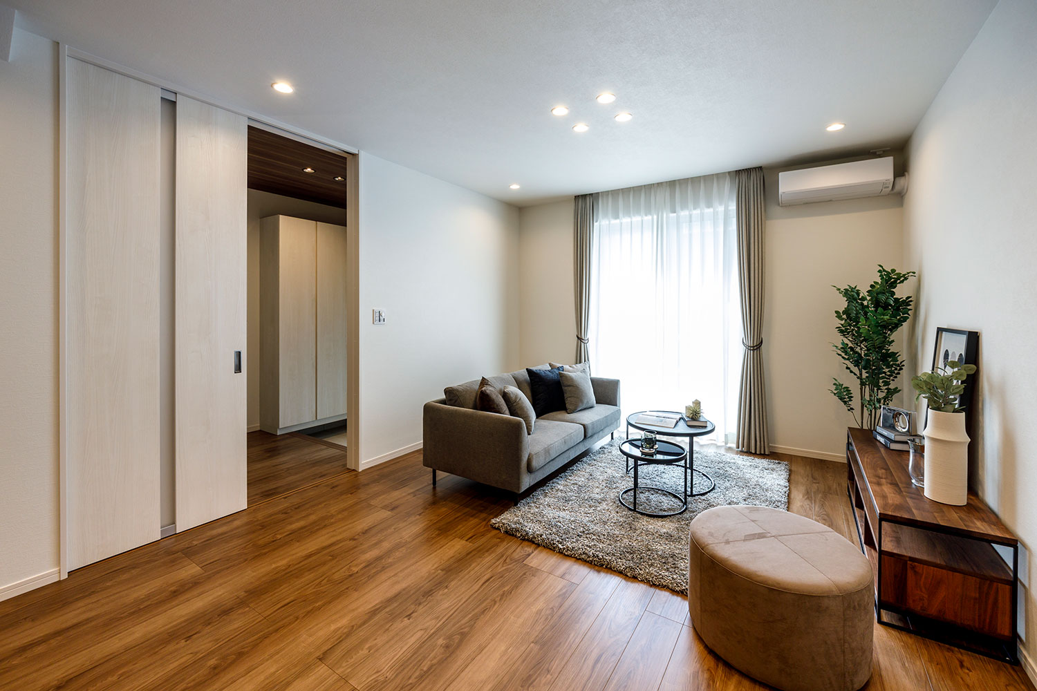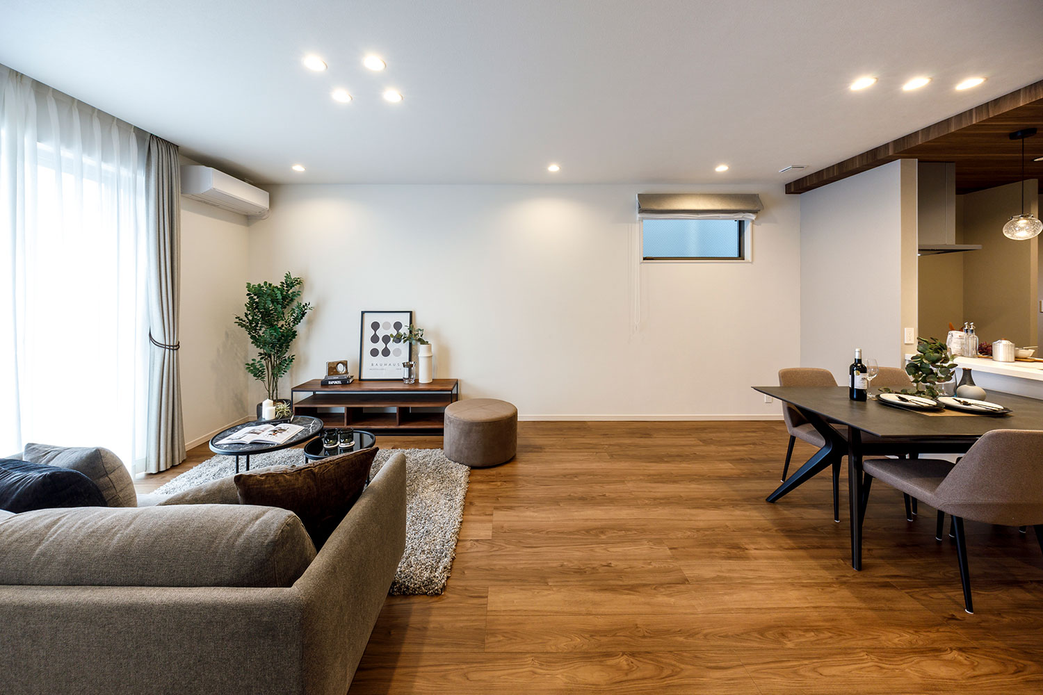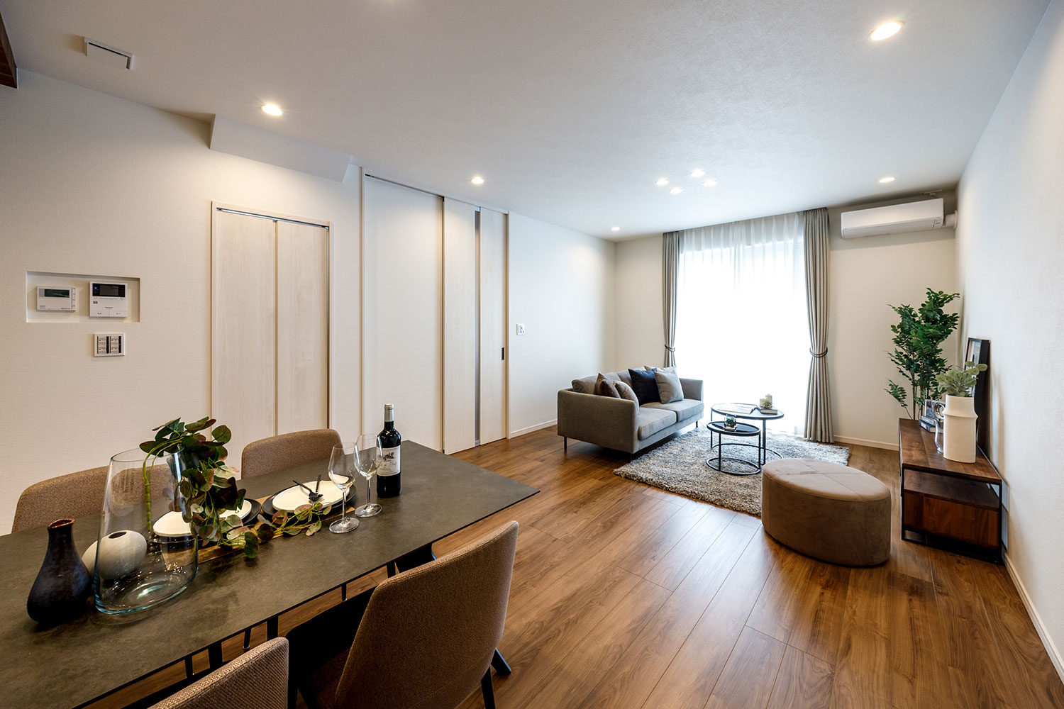 LDKエアコン1台、全室にサンゲツ製の機能性豊かで高品質なオーダーカーテン、全室LED照明を標準装備。快適な暮らしがご入居後すぐに実現します。