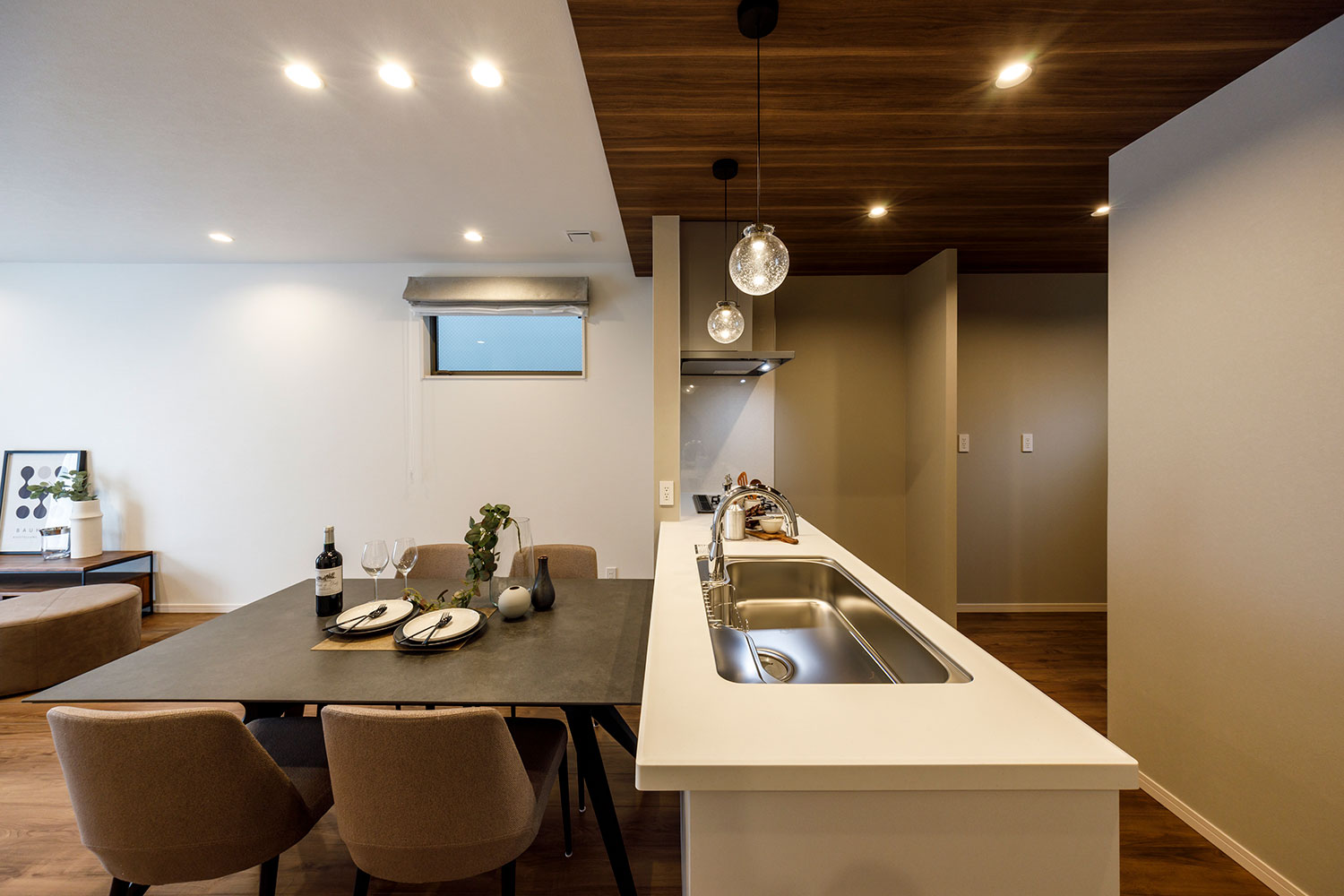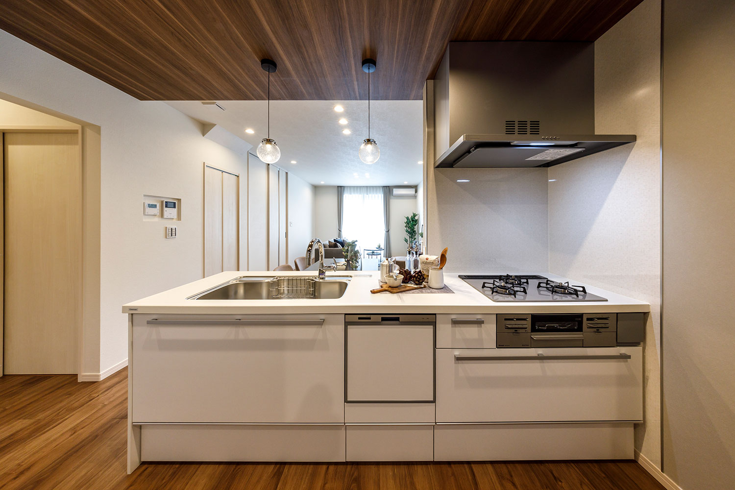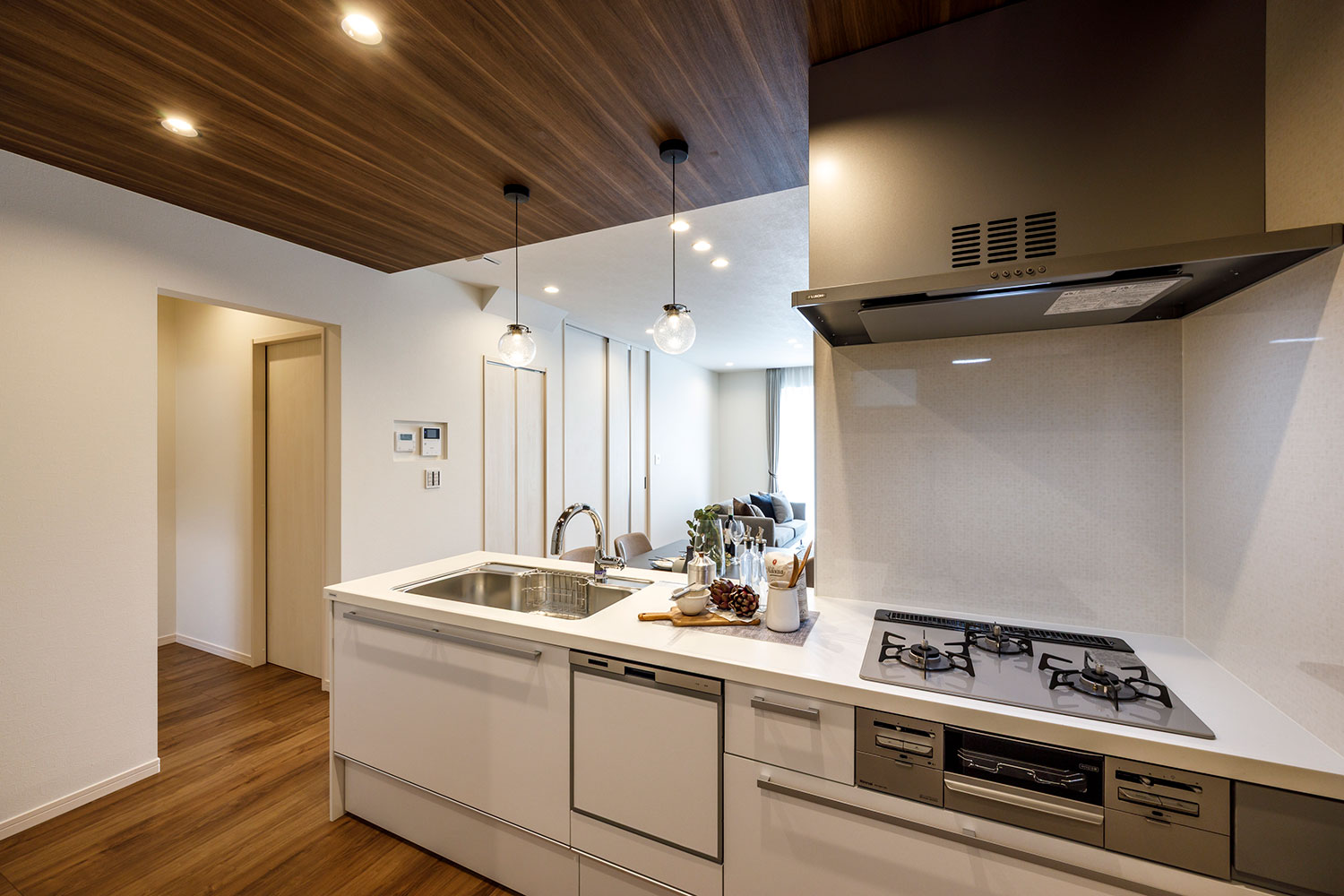 質感豊かな人造大理石のワークトップには静音シンクや浄水器を標準装備。鏡面仕上げのキッチンパネルはお掃除簡単!収納力と使い勝手を追求したサイレントキッチン。