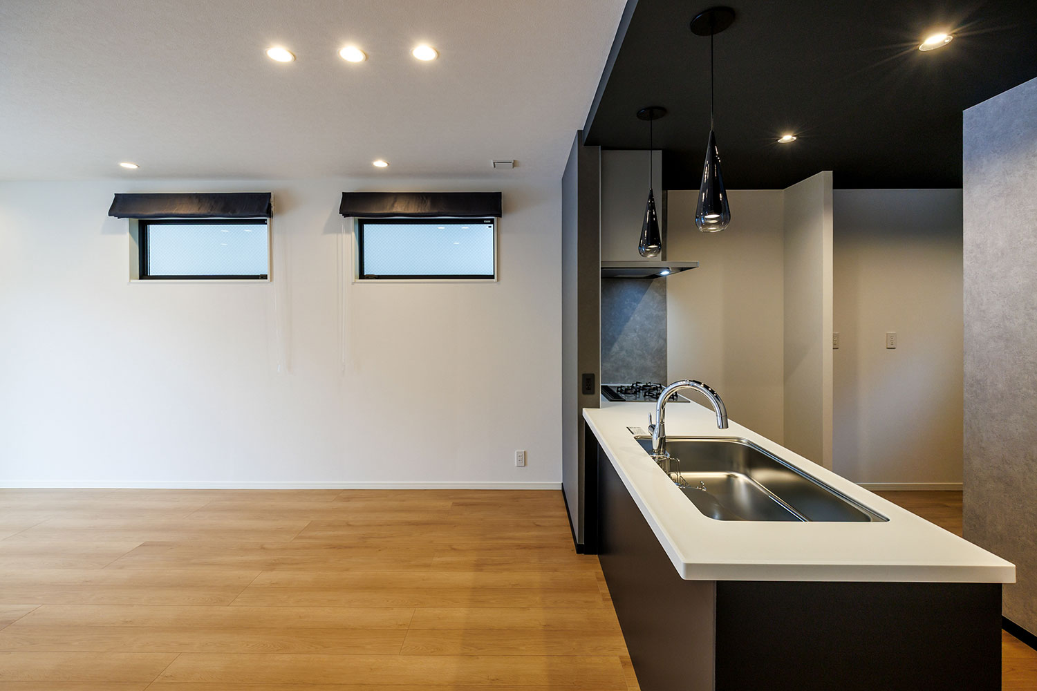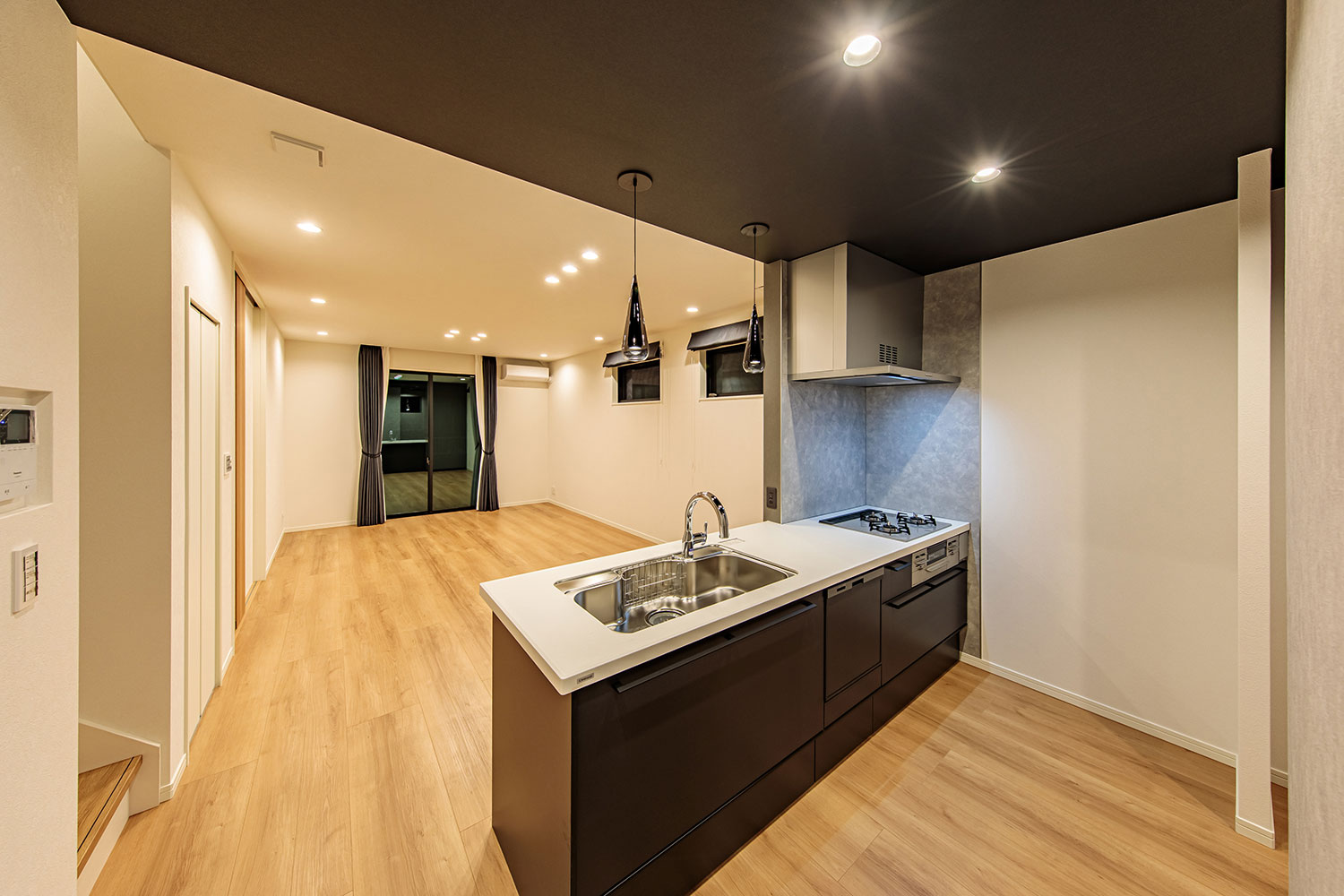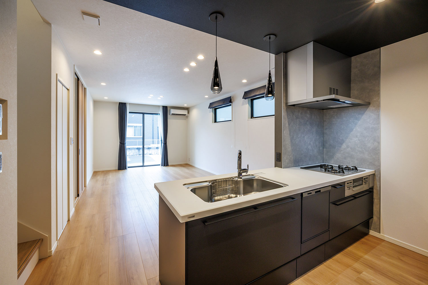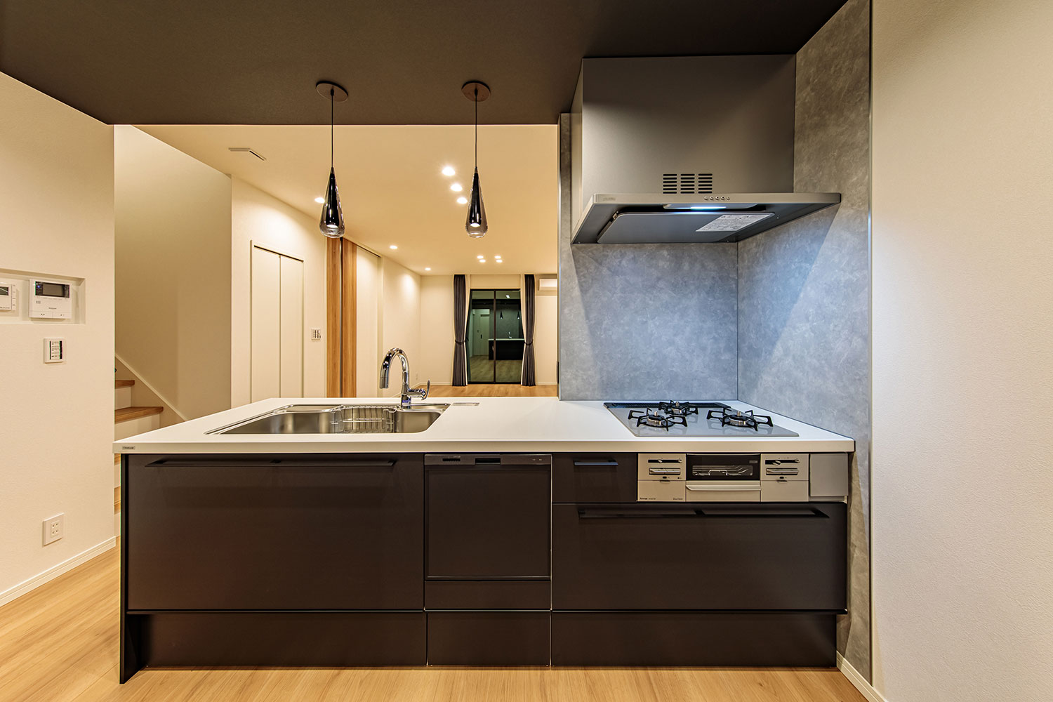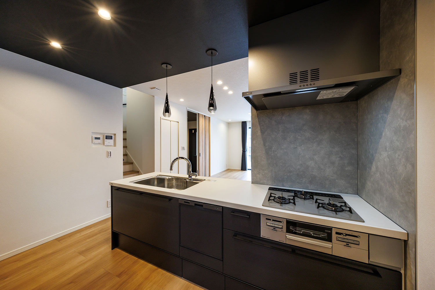 質感豊かな人造大理石のワークトップには静音シンクや浄水器を標準装備。鏡面仕上げのキッチンパネルはお掃除簡単!収納力と使い勝手を追求したサイレントキッチン。