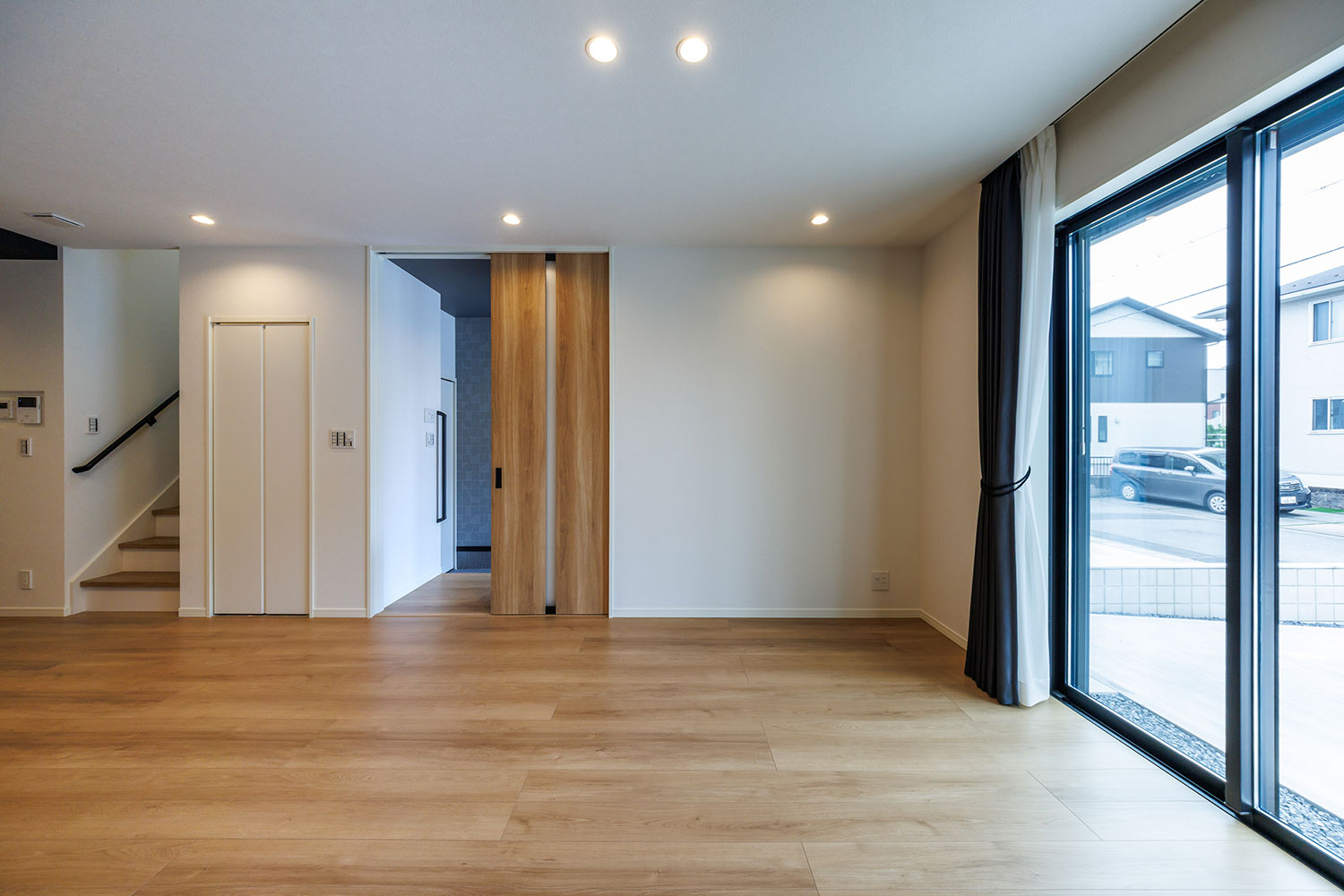■2面採光で明るい陽光溢れる床暖房付きのLDK