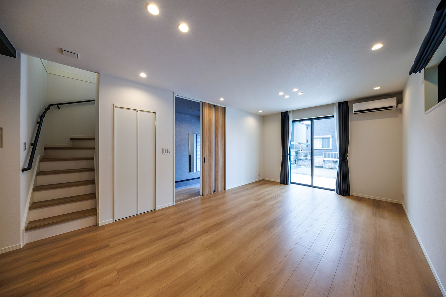 LDKエアコン1台、全室にサンゲツ製の機能性豊かで高品質なオーダーカーテン、全室LED照明を標準装備。快適な暮らしがご入居後すぐに実現します。