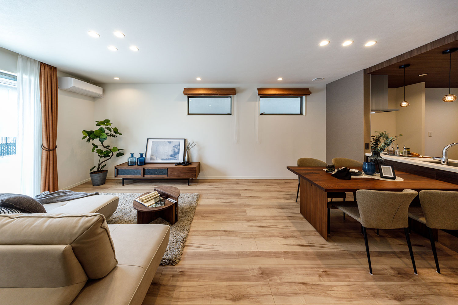 ■2面採光で明るい陽光溢れる床暖房付きのLDK